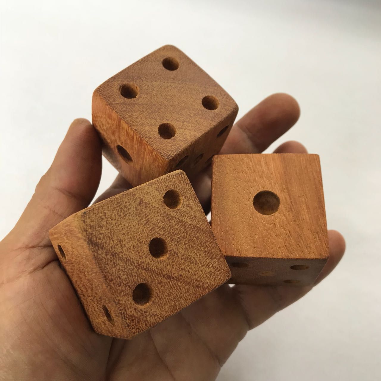 Então, aproveitamos e fizemos esses lindos dados de madeira, feitos em Cambará.