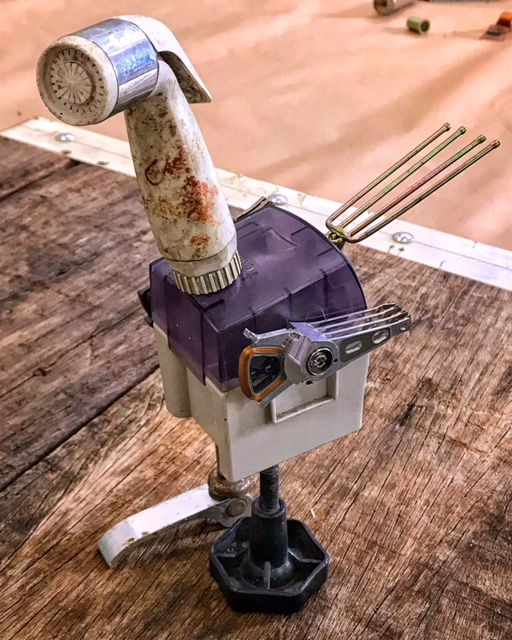Feita em sucata, essa galinha é peça única, assinada pelo Atelie Miniart.